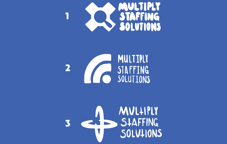 The three concept logos for the staffing agency are designed to embody the essence of searching for candidates and fostering connectivity. Each logo creatively incorporates elements such as magnifying glasses and interconnected lines to symbolize the hunt for talent while highlighting the importance of building strong relationships between employers and potential candidates.