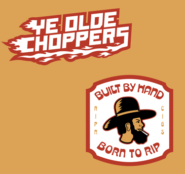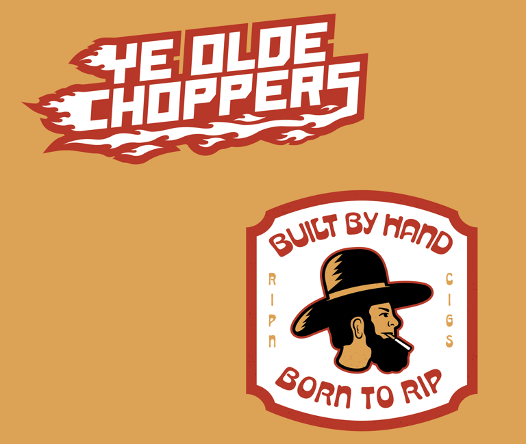 A badge connecting the brand and a tagline of what this brand is all about, rippin choppers and building by hand.