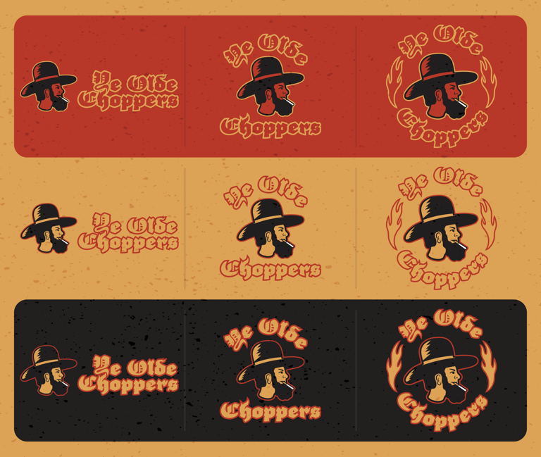 A secondary bold word mark crafted with motion and flames connecting to the famous chopper paint jobs.